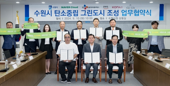 10일 수원시청 상황실에서 탄소중립 그린도시 조성 업무협약을 체결하고 , 탄소중립 그린도시 수원을 함께 만들어 나가기로 했다.